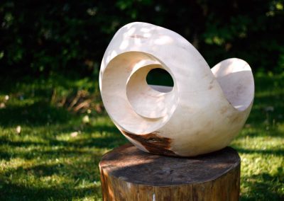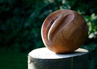 Die Endbehandlung erfolgt meist mit hochwertigen biologischen Ölen und Wachsen. So entsteht neben dem visuellen Erlebnis beim Berühren auch ein intensiver haptischer Genuss. Die von mir mit Naturlacken behandelten Arbeiten können ohne Bedenken auch im Freien aufgestellt werden.